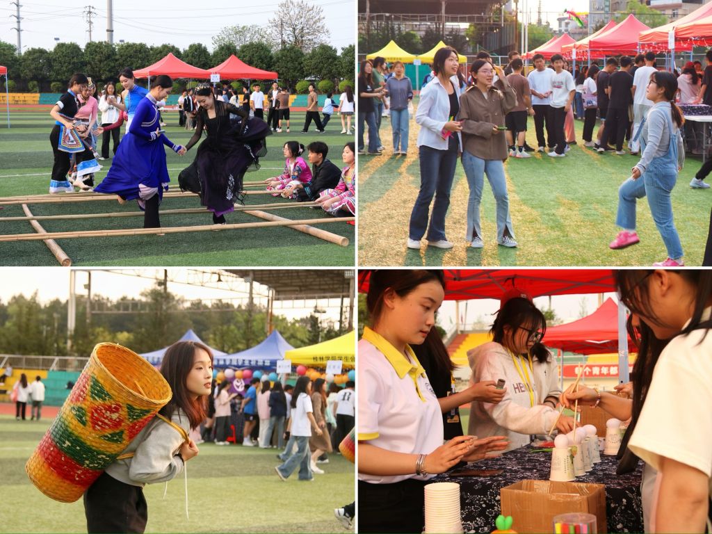 活动在欢快的竹竿舞中拉开帷幕,其涵盖了非物质文化遗产的展示、民族手工艺品、民族传统美食以及歌舞表演等民俗文化内容。师生们通过参与“神笔马良”游戏绘壮乡风情、“绣球抛一抛”展壮乡才艺、“五色糯米”品壮乡美食等丰富多彩的特色活动,深切体验壮族的民俗风情,充分感受民族传统文化的魅力。现场互动气氛热烈,热情高涨,充分体现了各族师生心手相牵、团结奋进的时代新风貌。