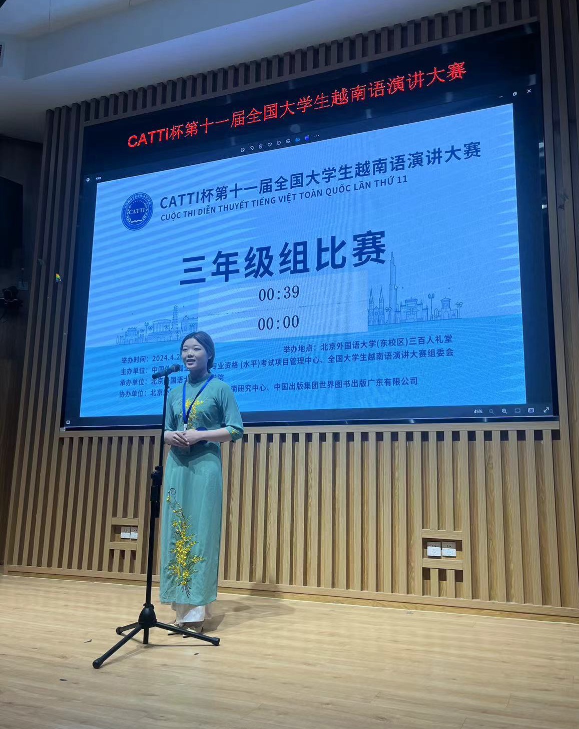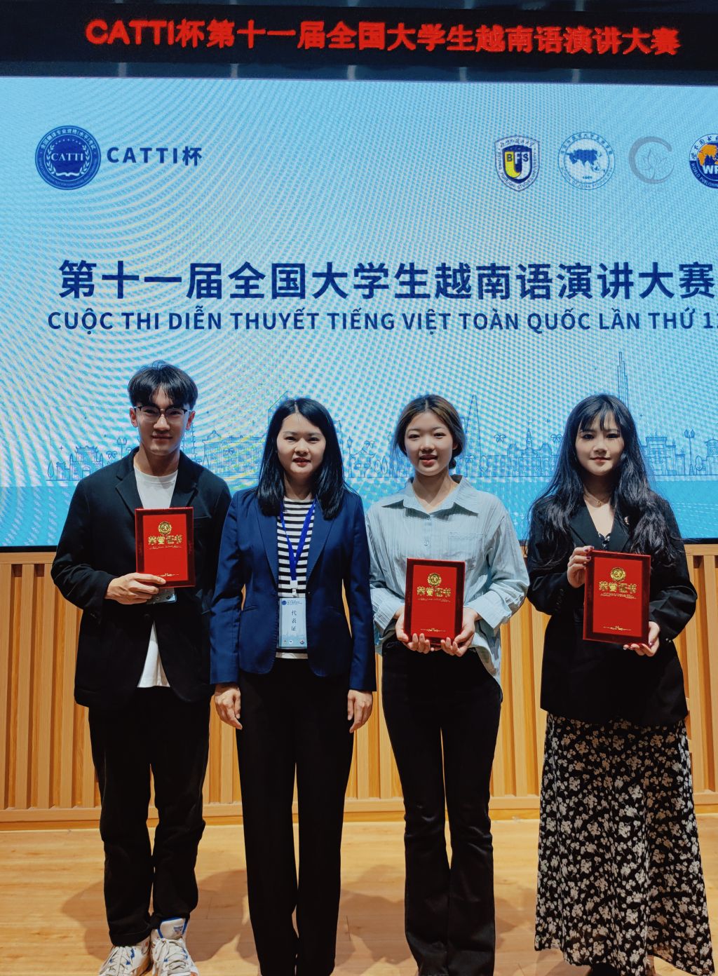 4月27-28日,由中国外文局全国翻译专业资格(水平)考试项目管理中心、全国大学生越南语演讲大赛组委会主办的CATTI杯第十一届全国大学生越南语演讲大赛在北京外国语大学隆重举行,我校越南语专业教师阳琦兰带领三名学生参加了此次大赛,与来自全国20多所高校的78名学生同台竞技。