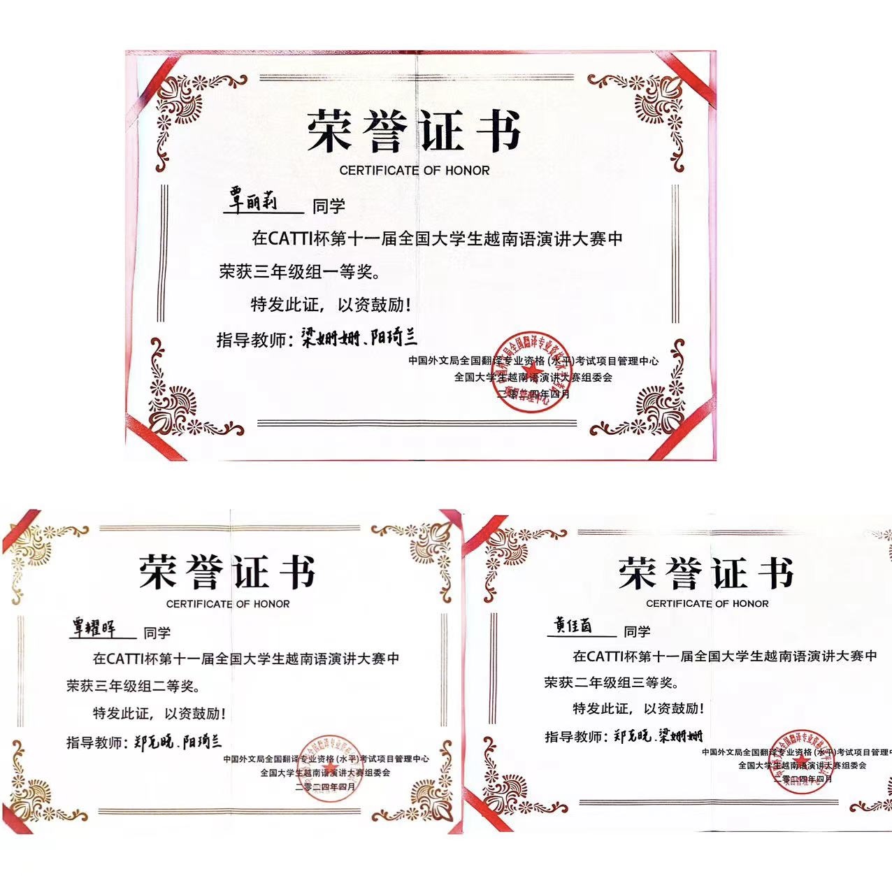 全国大学生越南语演讲大赛两年举办一次,代表着中国高校越南语人才培养的最高水平。大赛不仅是对高校教学和选手们个人能力的一次全面检验,更是为我国越南语教育事业、国际传播事业、“一带一路”事业储备和选拔人才的重要举措。此次参赛的优异表现充分展示了学校越南语专业人才培养的成果,今后越南语专业会继续以赛促教、以赛促学,争取为地方经济发展培养更多的越南语人才。