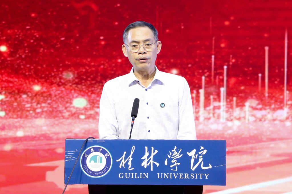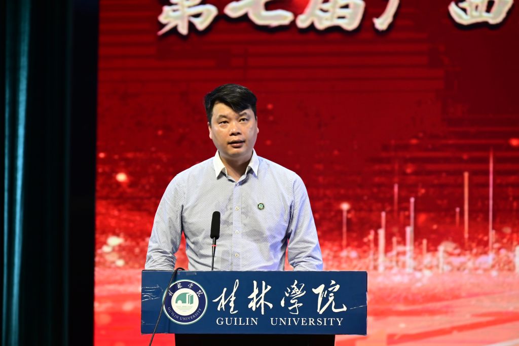 杨树喆在致辞中首先向在第七届广西大学生艺术展演活动中获奖的作者和指导老师们致以热烈的祝贺,向长期以来为学校美育工作辛勤付出的师生们致以崇高的敬意。他表示,自2021年5月独立设置以来,学校通过多措并举加强美育和公共艺术教育工作,广大师生在自治区人民政府第十一届广西文艺创作铜鼓奖评审和第七届广西大学生艺术展演活动中取得了不凡的成绩。这既是对学校多年来美育工作的肯定,也是学校师生坚持崇德尚艺,紧跟时代步伐,弘扬优秀传统文化的生动体现。他勉励全校师生以本次活动为契机,深入总结经验、锤炼精品,携手共进,进一步深化学校美育工作,构建形成全覆盖、多样化、高质量、具有“至善”校园文化特色的美育体系。