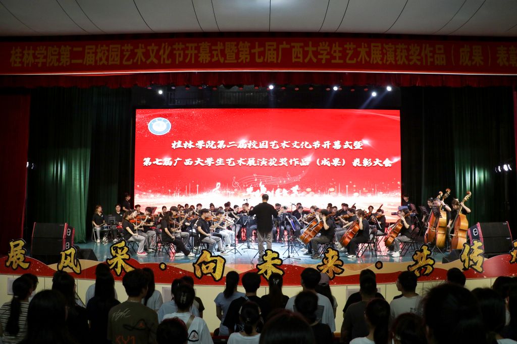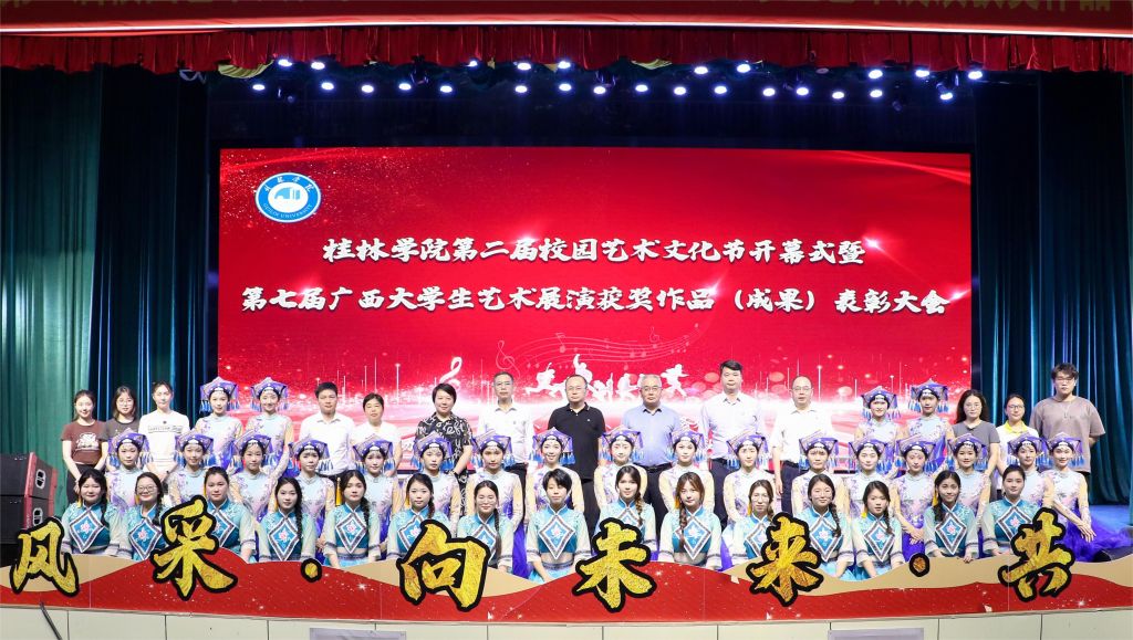 在颁奖环节,诸葛长为第十一届广西文艺创作铜鼓奖获得者杨树喆颁发“董事会特别奖”。唐文红、刘文革、杨庆庆、何玲分别为荣获第七届广西大学生艺术展演“校长风采奖”“高校美育改革创新优秀案例”“艺术表演类作品”“学生艺术实践工作坊”“学生艺术作品”等奖项的个人或团队代表颁发荣誉证书。杨树喆将其著作《民众口头创作与族群文化品性》(第十一届广西文艺创作铜鼓奖获奖作品)赠予师生代表。