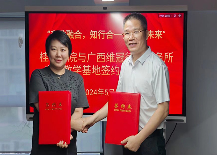 广西维冠律师事务所主任苏日好介绍指出,本所是中国第一家以公司化作为运营模式、以越南法律事务作为核心业务发展方向的合伙制综合性律师事务所,为广西第一家在海外设立分支机构的律师事务所。杨庆庆介绍了法学专业“高校——法律实务部门”深度双向互融的人才培养模式,学校以职业为导向深入推进学科交叉融合的优势,以及学生立足广西、服务“一带一路”法治建设的就业趋势。