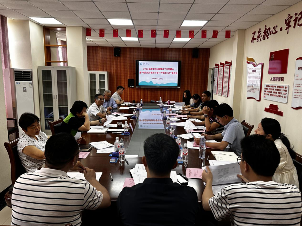 5月21日上午,校长杨树喆在知善楼8312会议室主持召开2023年度年检问题整改工作部署会暨“规范民办高校办学行为专项行动”推进会。校领导刘文革、杨庆庆、何玲、蒋毅出席会议。学校办公室/董事会秘书处、党委工作部、发展与质量评估处、教务与产教融合处、人力资源处(部)、学生事务处(部)、资产与设备管理处、财务处、图文信息中心、后勤保卫处主要负责人参加了会议。