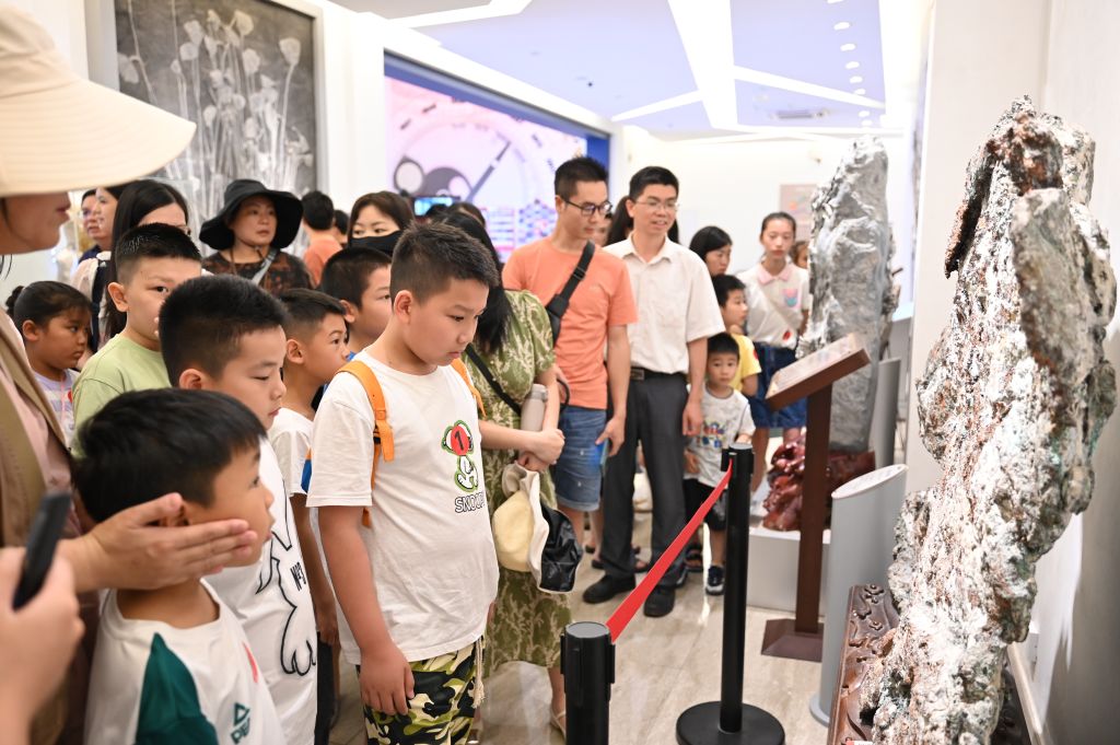 桂林理工大学地质博物馆馆藏丰富、陈列形式多样,围绕生命起源与演化、行星地球、陨石与深空探测、地质作用、矿物岩石、矿产资源、地质环境、珠宝玉石等主题设有10个展厅。伴随着讲解员的引导和解说,学校教职工及其子女亲身感受到了地球的自然之美和生物多样性,激发了对自然、对生命的热爱,培养探索未知的勇气和毅力。