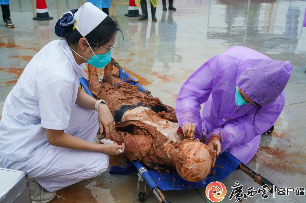 演练消防救援现场(广西日报见习记者黄海健摄)
