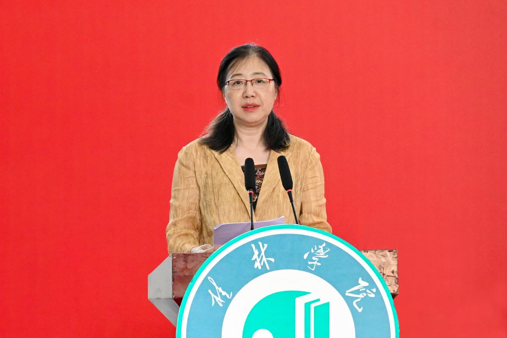 校董事、副校长何玲宣读桂林学院2024届西部志愿者名单。