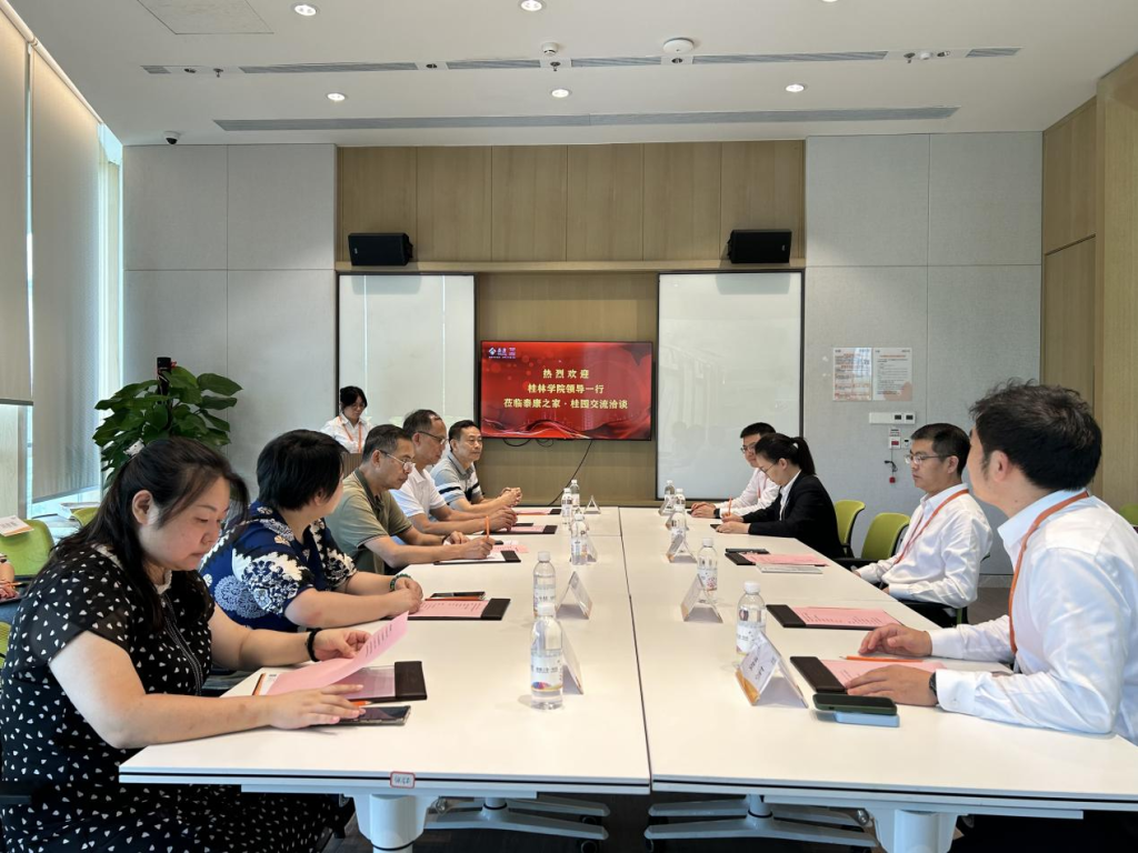 座谈会上,泰康之家·桂园副总经理龚珅介绍了公司发展情况及企业在养老服务、康复治疗、健康咨询等方面与南宁学校开展合作的情况,并就拟与桂林学院合作的项目进行了阐述。