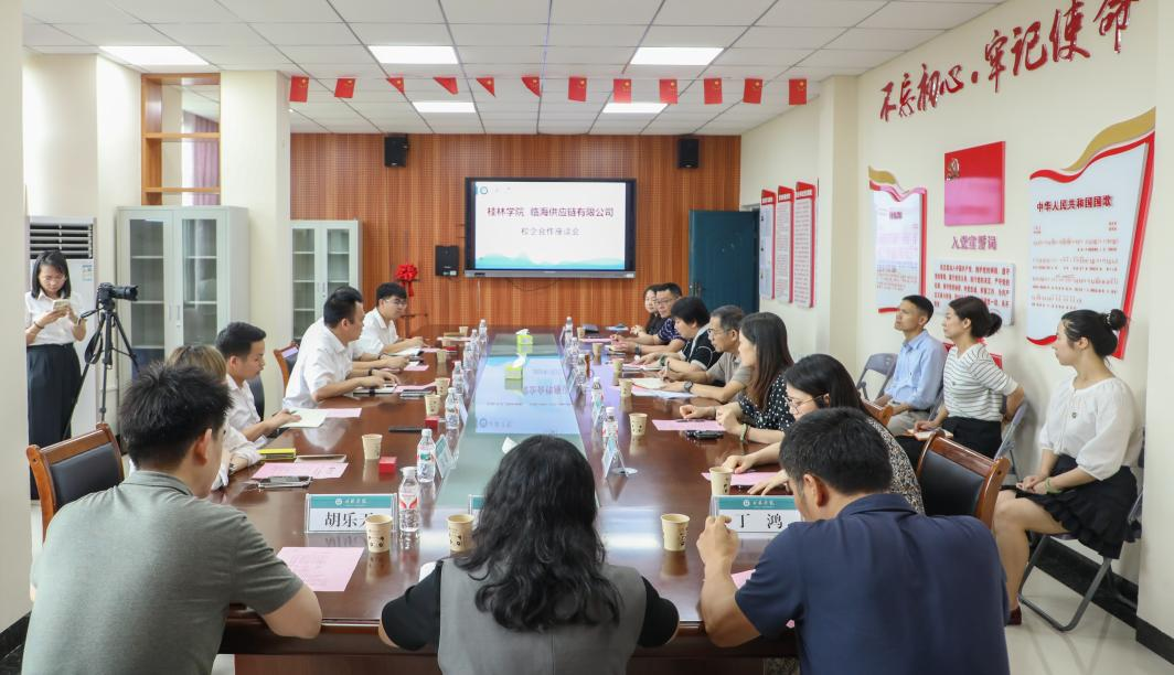 杨树喆对苏杰一行的到访表示热烈欢迎,简要介绍了学校发展沿革及独立设置3年来的主要办学成效。他表示,桂林学院一直致力于开展校企合作产教融合,先后与知名企业共建了名淘电商学院、粤嵌电子工程学院、东软软件学院、中软国际大数据技术学院等现代产业学院及其他校企合作项目,广西自贸区临海供应链公司的业务范围与学校金融与法律学院、管理工程学院的专业设置高度契合,在应用型人才培养方面具有较广的合作空间,希望双方发挥各自优势,加强校企合作,深化产教融合,共同培养适应新质生产力发展需求的高素质人才。