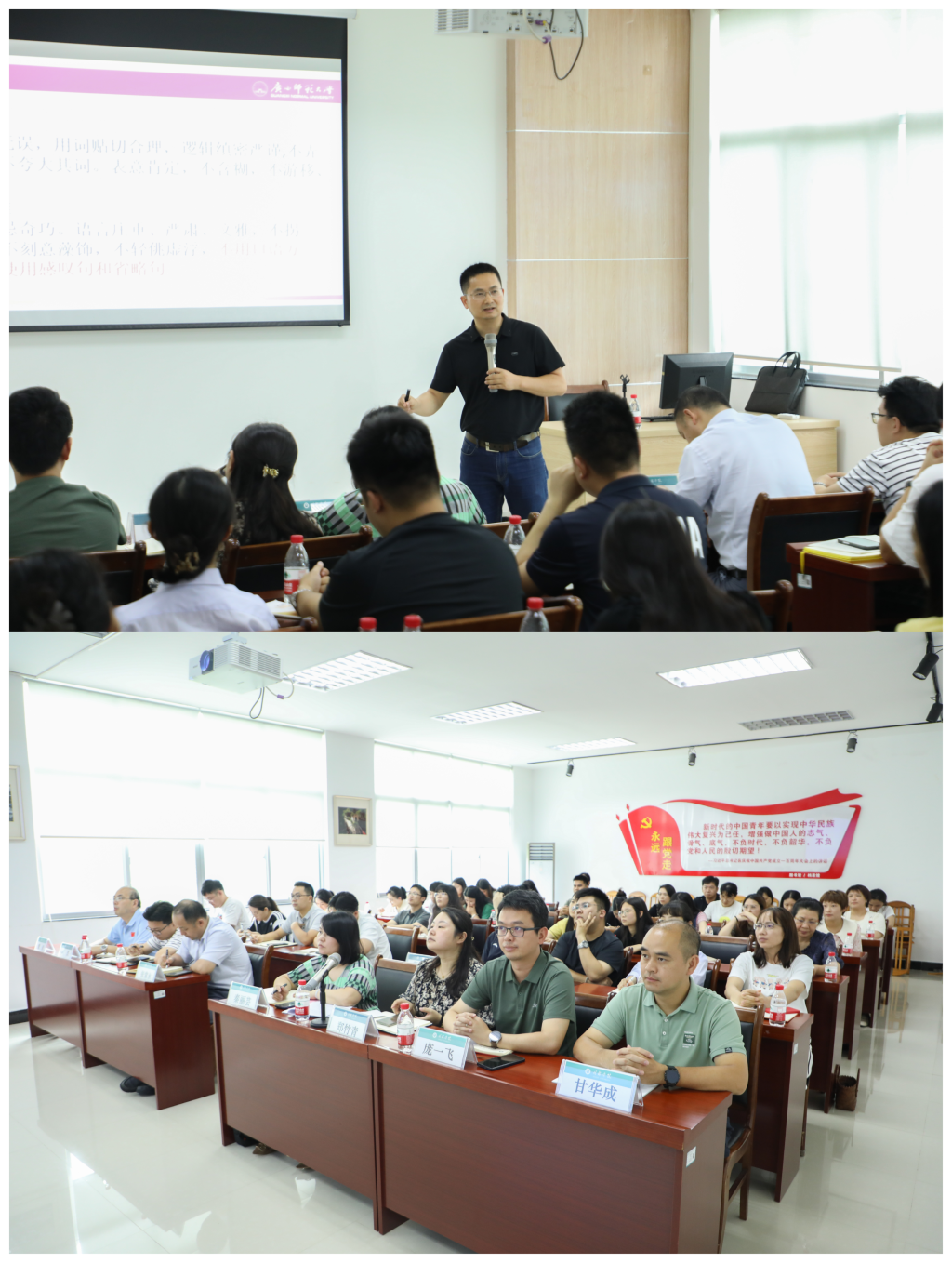 为进一步提升我校行政工作人员公文写作能力,持续推进公文处理工作的标准化、规范化、科学化,切实提高工作质量、增强管理效能。7月4日,我校在图书馆C馆三楼报告厅开展公文写作专题培训,特邀广西师范大学法学院党委书记窦武博士作题为“常用公文规范与写作技巧”的培训。会议由学校办公室主要负责人主持,各单位、各二级学院负责人,学校办公室全体人员、全体行政秘书参加培训。