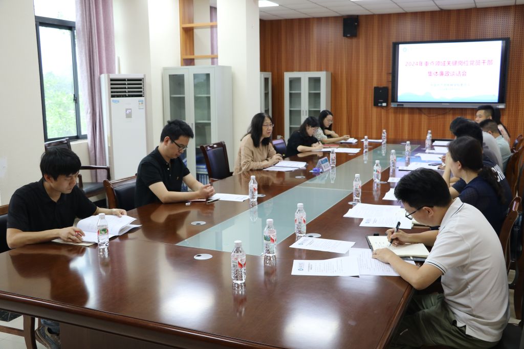 6月25日上午,学校在知善楼8312会议室召开2024年重点领域关键岗位党员干部集体廉政谈话会。党委工作部、资产、财务、后勤基建等重点领域关键岗位管理干部,2024年新提拔、试用期满正式任职管理干部10余人参加会议,校党委书记、政府督导专员唐文红作集体廉政谈话。