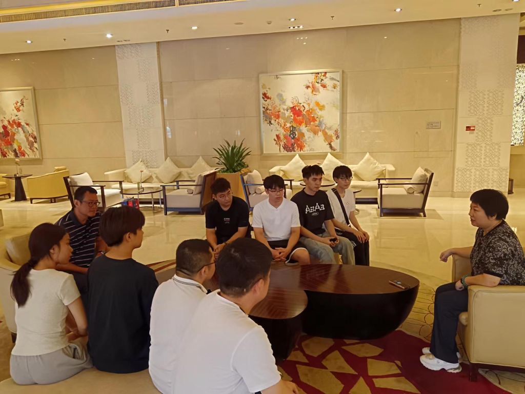 副校长杨庆庆(第二排右一)、教务与产教融合处处长杨杰夫(第二排左一)赛前到团队驻地慰问参赛团队师生