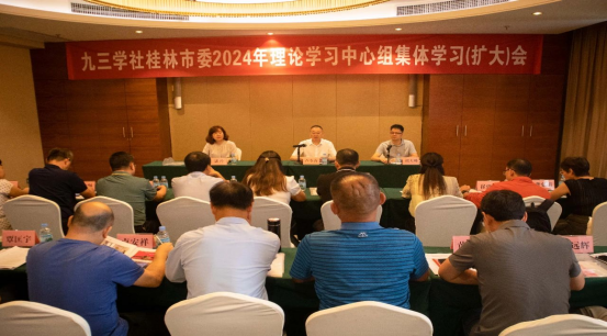 近日,九三学社桂林市委召开理论学习中心组集体学习(扩大)会,深入学习中共二十届三中全会精神和纪律学习教育内容。副校长、九三学社桂林学院支社主委何玲参加会议并作学习心得汇报发言。