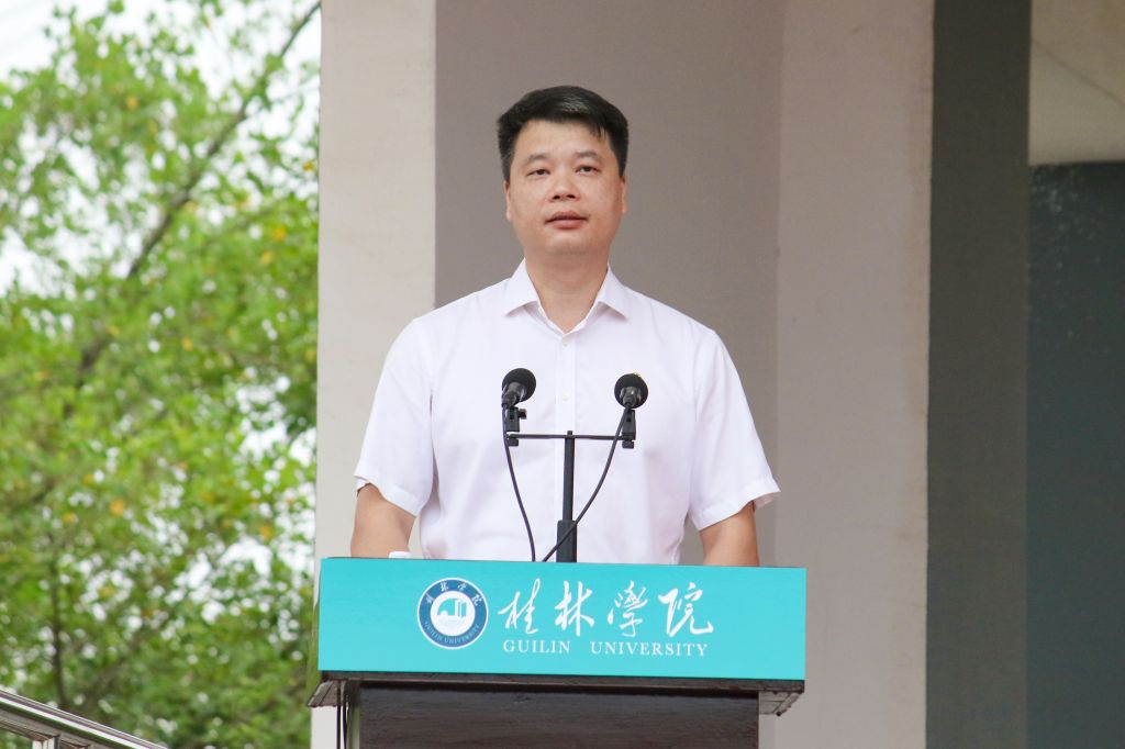 陶毅代表学校董事会对全体新生表示热烈的欢迎和祝贺,向一路指引陪伴新生的家长、师长致以崇高敬意。他表示在桂林市委、市政府的大力支持下,学校一定会越办越好,祝愿同学们学有所成,实现自己的梦想。