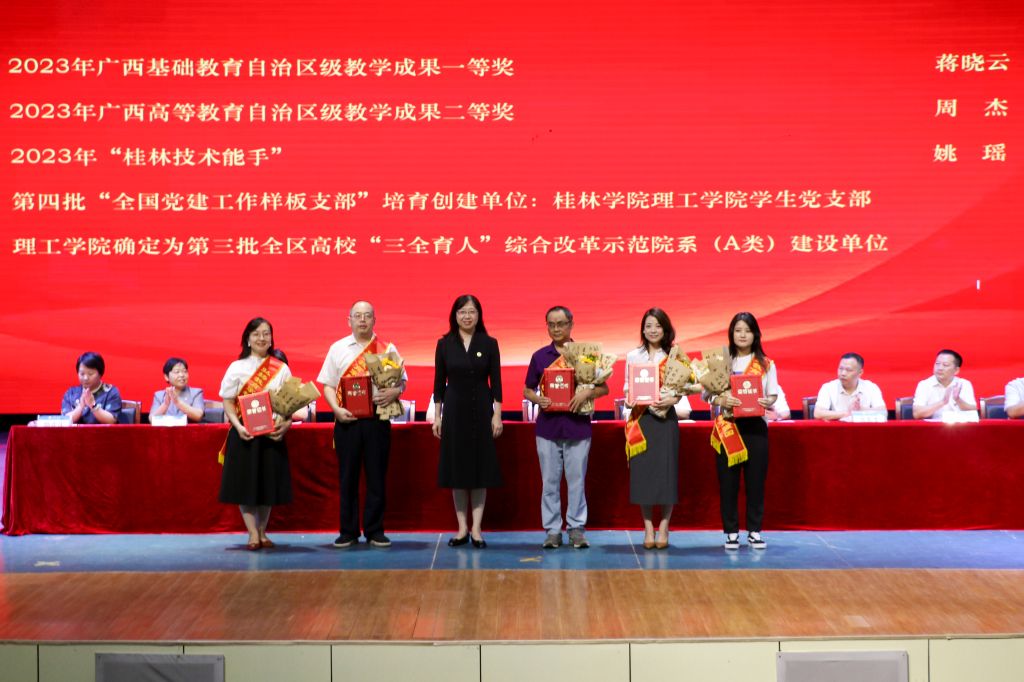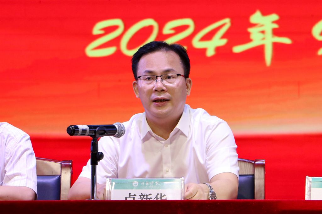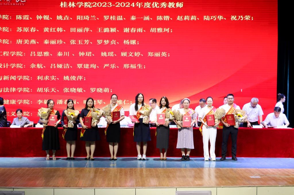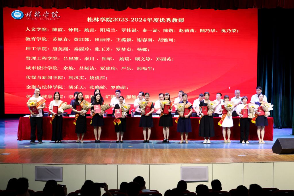卢新华代表市委、市政府向受表彰的优秀个人和先进集体(团队)表示祝贺,向全校教职工致以诚挚的节日问候。他高度肯定了桂林学院自2021年转设以来取得的成绩,并根据市委书记周家斌的指示要求,就进一步做好学校教育教学各项工作提出了三点希望:一是希望桂林学院进一步深入学习贯彻落实习近平总书记关于教育的重要论述,始终坚持正确的办学方向,准确把握市委、市政府对桂林学院的发展定位,办好人民满意的城市型大学,切实加强学校各项管理工作,营造安全稳定和谐的校园环境。二是希望全体教职工坚守立德树人初心,勇担教书育人使命,为打造世界级旅游城市,奋力谱写中国式现代化桂林篇章,作出新的更大贡献。三是希望同学们坚定理想、志存高远,勤奋学习、增强本领,在打造桂林世界级旅游城市中激荡青春力量、展现青春风采、成就精彩人生!