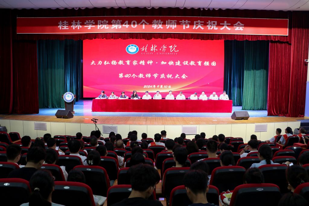 9月10日上午,学校在弘善讲堂隆重举行第40个教师节庆祝大会,桂林市委副书记卢新华出席会议并讲话。学校董事长陶毅,校领导唐文红、杨庆庆、黄润松、康庚莲、刘文革、何玲、蒋毅,全体中层管理干部,优秀教职工代表,2024年新入职教职工以及师范生代表等200余人参加大会。大会由学校董事会董事、校党委书记、政府督导专员唐文红主持。