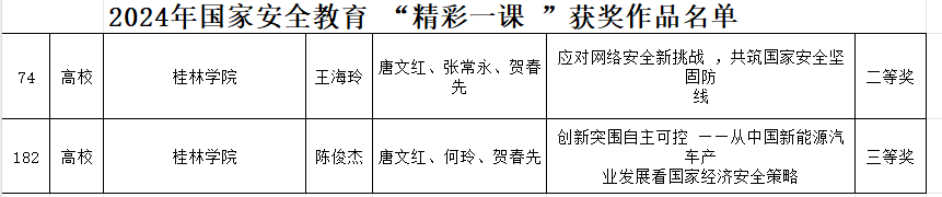 近日,自治区教育厅公布了2024年国家安全教育“精彩一课”评选活动获奖名单,我校教师王海玲讲授的《应对网络安全新挑战,共筑国家安全坚固防线》荣获二等奖,陈俊杰老师讲授的《创新突围自主可控——从中国新能源汽车产业发展看国家经济安全策略》荣获三等奖。