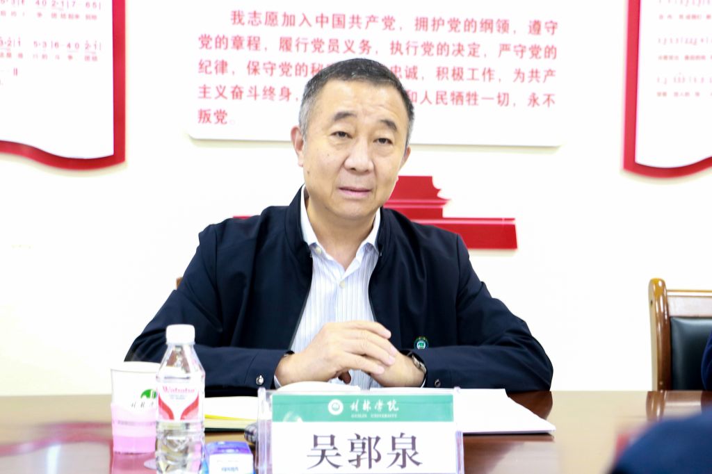 座谈会上,吴郭泉首先对来访人员表示欢迎,对广西师范大学出版社集团、独秀书房长期以来支持学校学科专业、校园文化建设表示感谢。吴郭泉对我校与“独秀书房·桂院店”的合作共建进行了回顾,高度肯定了作为校内唯一多功能实体书店的独秀书房在书香校园文化建设、推动全民阅读、搭建文化交流平台、丰富图书资源等方面对学校的推动和促进作用。作为校企合作的成功案例,独秀书房与学校至善校园文化融为了一体,进一步提升了学校的校园文化内涵和品位。吴郭泉同时展望了学校与独秀书房第二个周期的合作,他希望明年底图文信息大楼建成后独秀书房能在大楼内拓展空间,设立第二个独秀书房,把书房打造成集学习、生活、社交、一站式思政、一站式文创等于一体的新型复合型文化空间,使书房成为图书+、文化+的综合服务中心,吸引更多学生走进书店。