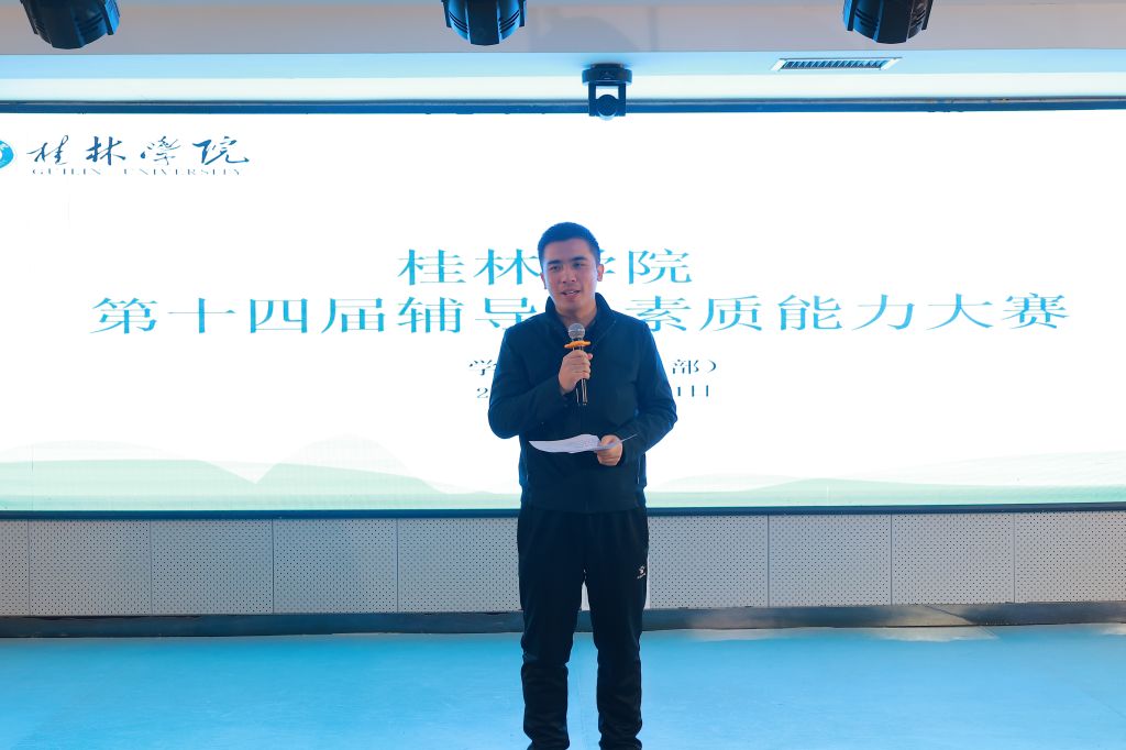 为学习贯彻习近平新时代中国特色社会主义思想和党的二十大精神,大力加强我校辅导员队伍建设。11月20日-21日,我校举办第十四届辅导员素质能力大赛,副校长蒋毅出席大赛颁奖典礼。本次大赛学校特邀广西师范大学、桂林电子科技大学、桂林理工大学、桂林旅游学院相关领导、专家到校担任评委嘉宾。