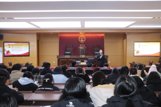 活动伊始,桂林市雁山区人民法院执行局肖雄法官在1111模拟法庭带来了一场反腐专题讲座。肖雄法官以“学法、知法、守法、树立反腐意识,做清廉学生”为主题,结合国际反腐日的背景,深入剖析了反腐斗争的重要性和紧迫性。他通过真实案例,生动诠释了廉洁自律对于大学生的重要意义,并鼓励同学们洁身自好、遵纪守法,成为新时代的清廉学生。讲座过程中,同学们认真聆听,积极互动,现场气氛热烈,加深了对反腐斗争的认识,坚定了廉洁自律的信念。