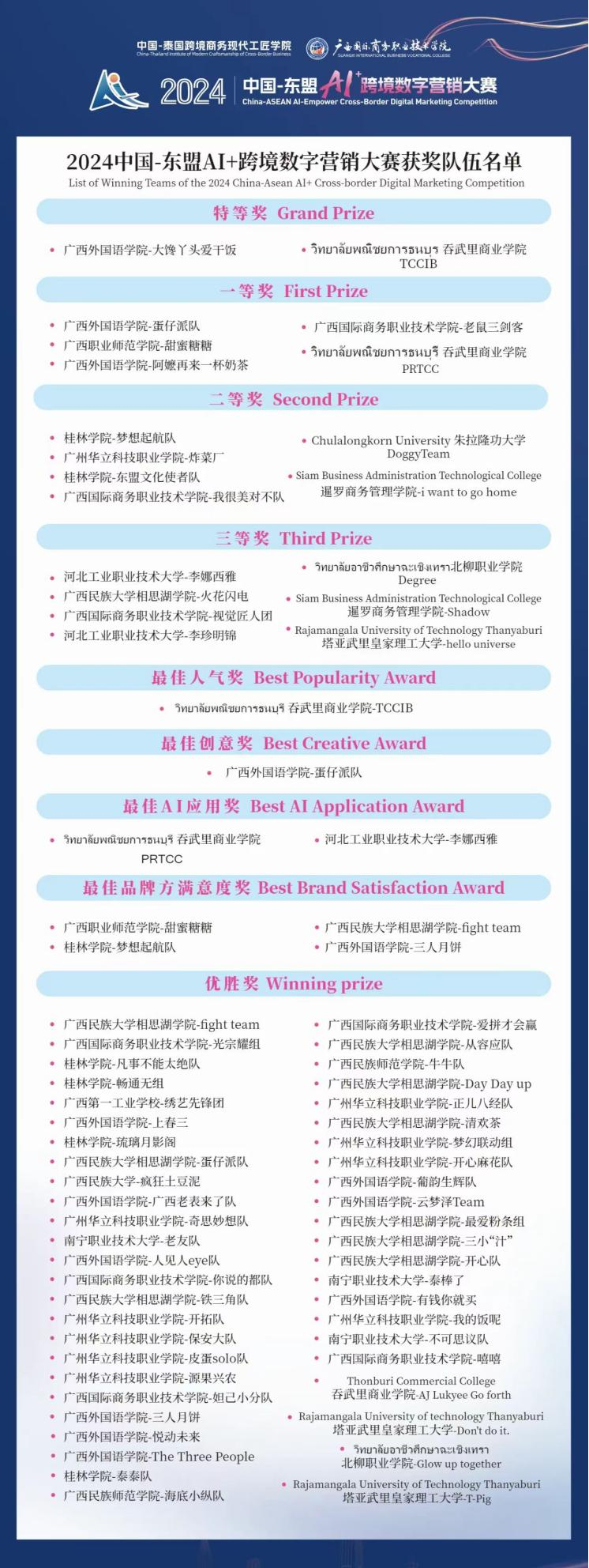 此次大赛不仅为我校电子商务专业的学生提供了一个展示才华和锻炼能力的平台,也让他们有机会与来自东盟各国和我国各高校的优秀团队进行交流和学习。通过参赛,学生们不仅深化了对AI+跨境数字营销的理解,还提升了自身的实践能力和团队协作能力。