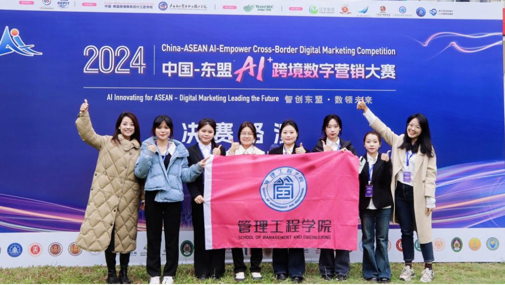 近日,“2024中国—东盟AI+跨境数字营销大赛”圆满落幕。来自中国、俄罗斯、蒙古、泰国、马来西亚、柬埔寨、越南、菲律宾等8个国家的372支队伍报名参赛,经过层层选拔,最终我校管理工程学院电子商务专业的学生团队,凭借出色的创意和扎实的专业能力在大赛中脱颖而出,夺得二等奖2项、最佳品牌方满意度奖1项和优胜奖4项的好成绩。