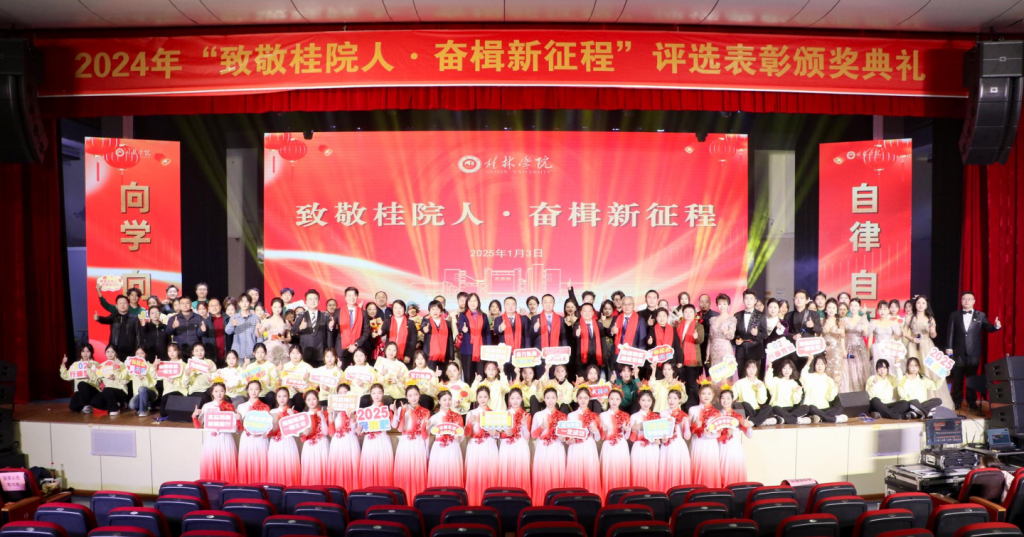 2024年,在全面深化教育教学改革的浪潮中,全体桂院人奋力走在前列,谱写了一首使命引领、大道同心的奋斗曲和变中求胜、稳中求进的发展曲,学校各项事业发展屡创历史新高。“致敬桂院人·奋楫新征程”评选表彰经过推荐、评议和审定,最终确定了5位致敬个人、2个致敬团队、3项致敬成果和1位特别致敬。