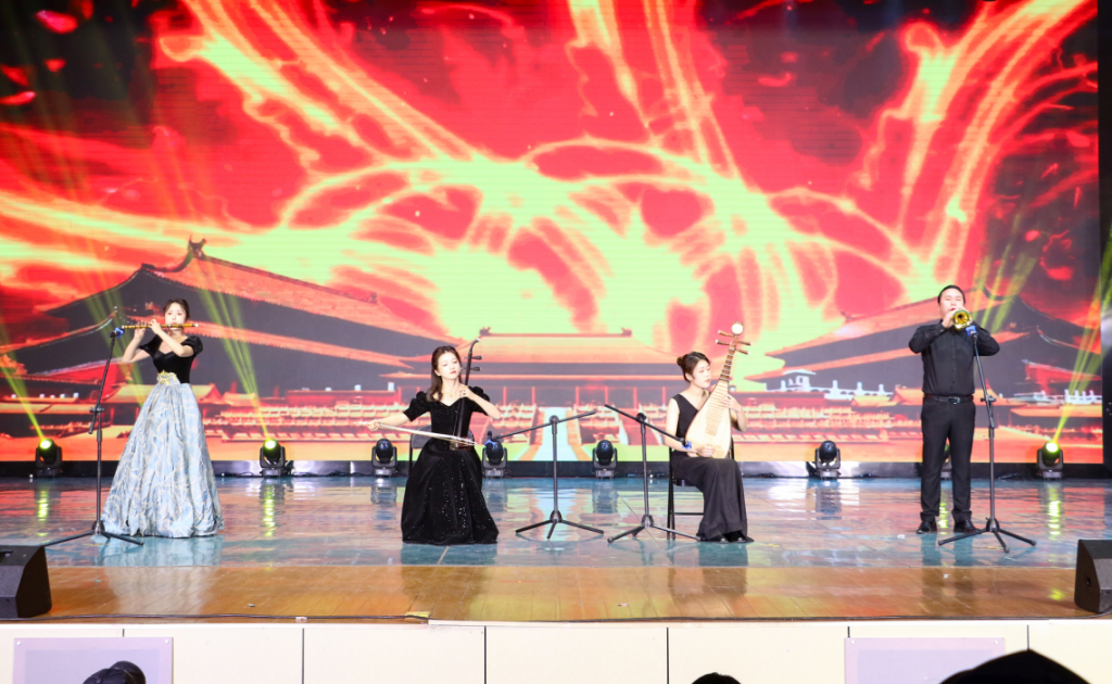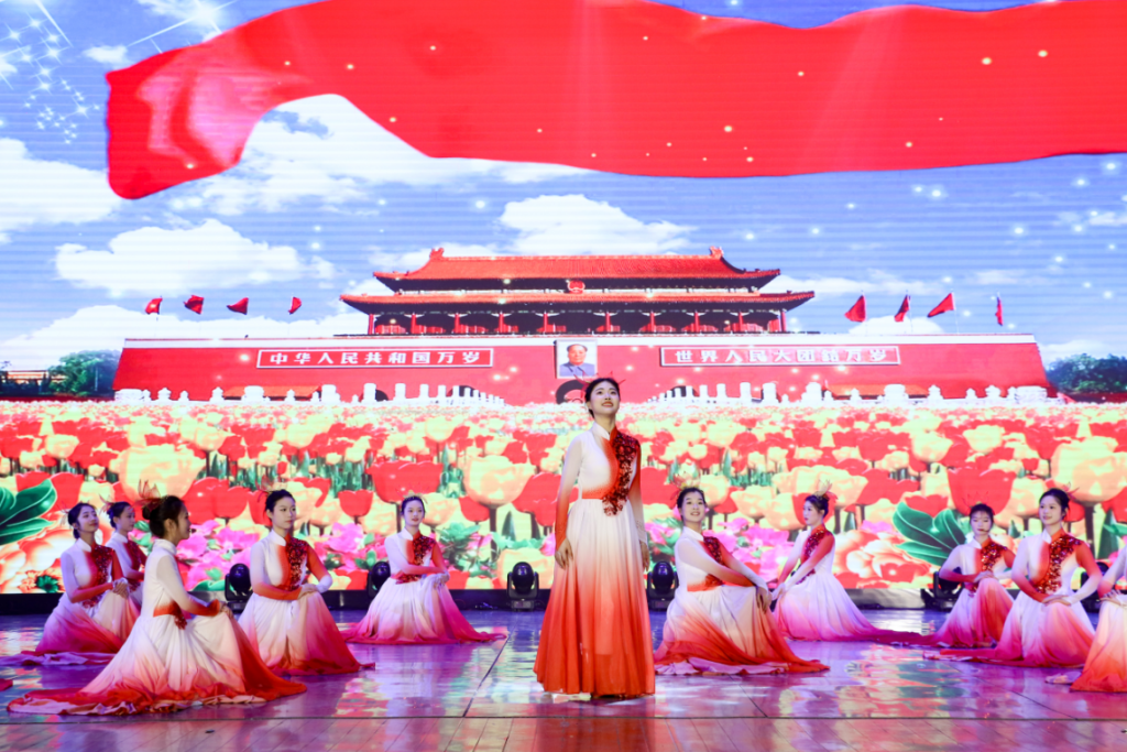颁奖典礼演出环节由百余名演职人员精心编排共同打造,以“回望”“奔跑”“腾飞”三个篇章,围绕“奋楫新征程”主题展开,融合非遗醒狮、乐器合奏、情景音画、歌伴舞、三句半、大合唱等丰富的艺术形式,在精彩纷呈的表演中展现了桂院师生朝气蓬勃、昂扬向上的精神风貌,在致敬中鼓舞士气、汇聚人心。