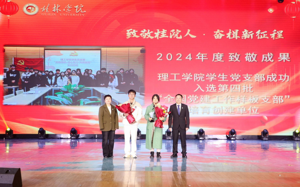 党委副书记、副校长黄润松,财务总监高丽娜为致敬成果“理工学院学生党支部入选第四批'全国党建工作样板支部'培育创建单位”颁奖