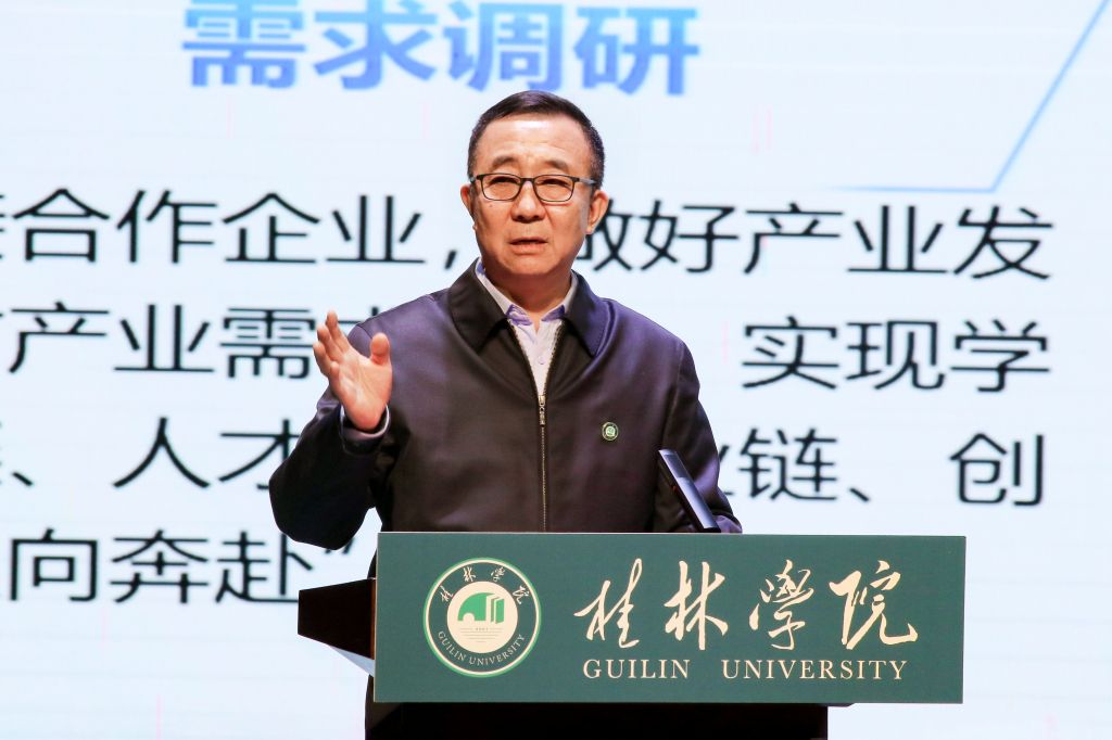 桂林城乡建设集团控股有限公司党委书记、董事长、学校董事长陶毅在大会闭幕式上总结讲话。陶毅对此次大会的成功举办给予了高度评价,对全体参会人员的积极参与和一年来辛勤付出的全体师生员工表示衷心感谢。他强调,此次教学工作大会是聚焦教育部本科教学工作合格评估,推动学校高质量发展的关键时期召开的一次意义深远的大会,是学校发展历程中的一个重要里程碑,对于明确学校未来发展方向、提升教育教学质量具有关键作用。他鼓励全体教职员工要以此次大会为契机,深刻认识合格评估的重大意义,坚定决胜合格评估目标的信心,以高度的责任感、使命感积极参与评估工作,以最高标准融入评估大考。陶毅表示,董事会将全力支持学校各项建设,进一步加大资金投入,改善办学条件、完善奖励机制、增强办学实力和活力,全面推进本科教学工作合格评估走深走实,为学校的未来发展书写更加美丽的篇章。