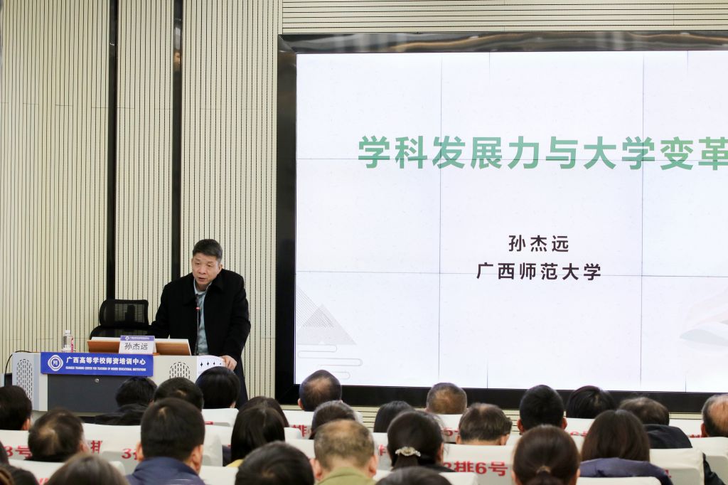 开班仪式结束后,项目首席专家、广西师范大学孙杰远教授围绕学科发展力与大学变革作了首场讲座。