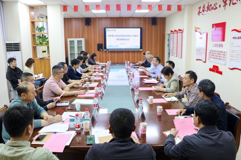 4月11日上午,桂林城乡建设控股集团有限公司副总裁董润秀、王巍率集团及下属子公司负责人一行到校调研,围绕校园建设、后勤运管、校企合作等议题开展专题调研,并在知善楼8312会议室召开座谈会。校领导吴郭泉、黄润松、刘文革、何玲陪同调研并参与交流。