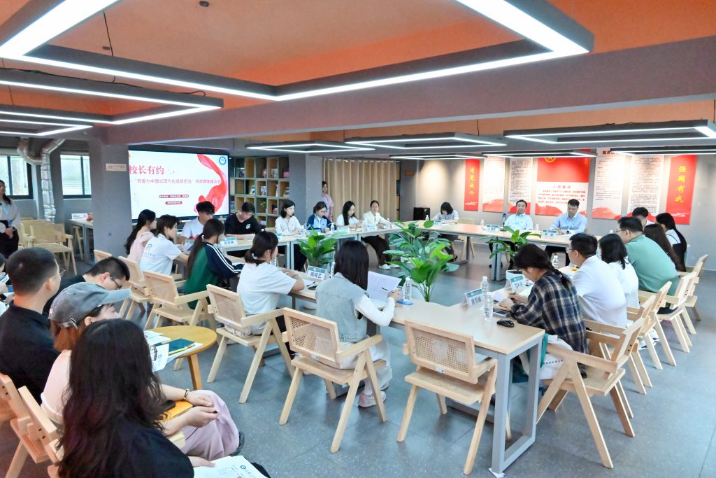 4月30日上午,杉湖家苑一站式党团活动中心内气氛热烈,一场青年师生座谈会在这里召开。校长吴郭泉在五四青年节前夕,与青年师生代表齐聚一堂,共话成长感悟,共谋责任担当。来自校团委、各二级学院的代表依次发言,围绕“青春为中国式现代化挺膺担当”“校园文化建设”“学生成长服务” 等话题展开交流。副校长蒋毅出席座谈会。