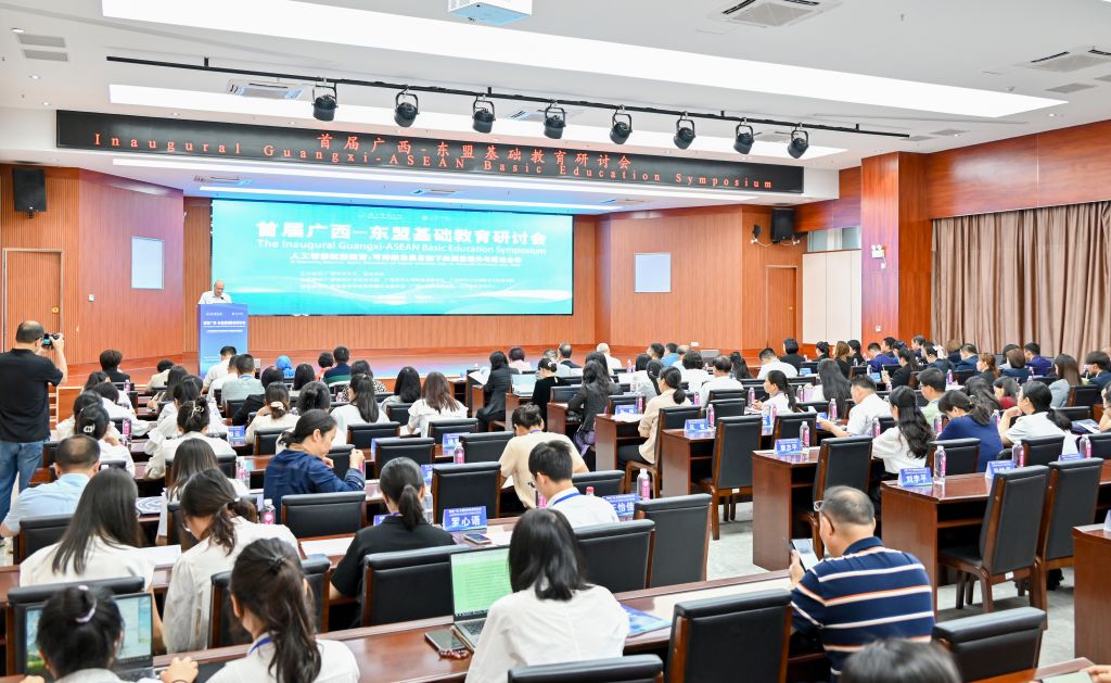 5月17日至18日,学校与广西师范大学联合举办首届广西—东盟基础教育研讨会。本次研讨会以“人工智能赋能基础教育创新与区域合作”为主题,吸引了来自国内和泰国、越南、印尼等东盟国家的专家学者、教育管理者及一线教师代表共200余人参会。与会人员围绕人工智能时代的基础教育变革、教师队伍建设、区域教育合作等议题展开深度交流,共绘教育发展蓝图。