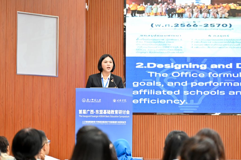 何玲在闭幕式上作总结发言。她指出,此次研讨会围绕教师队伍建设、人工智能融合教育等议题达成多项合作共识。未来,学校将依托“常态化交流机制”,联合东盟国家共建基础教育资源共享平台,推动师生互访、联合教研及课程开发,助力区域教育质量整体提升。