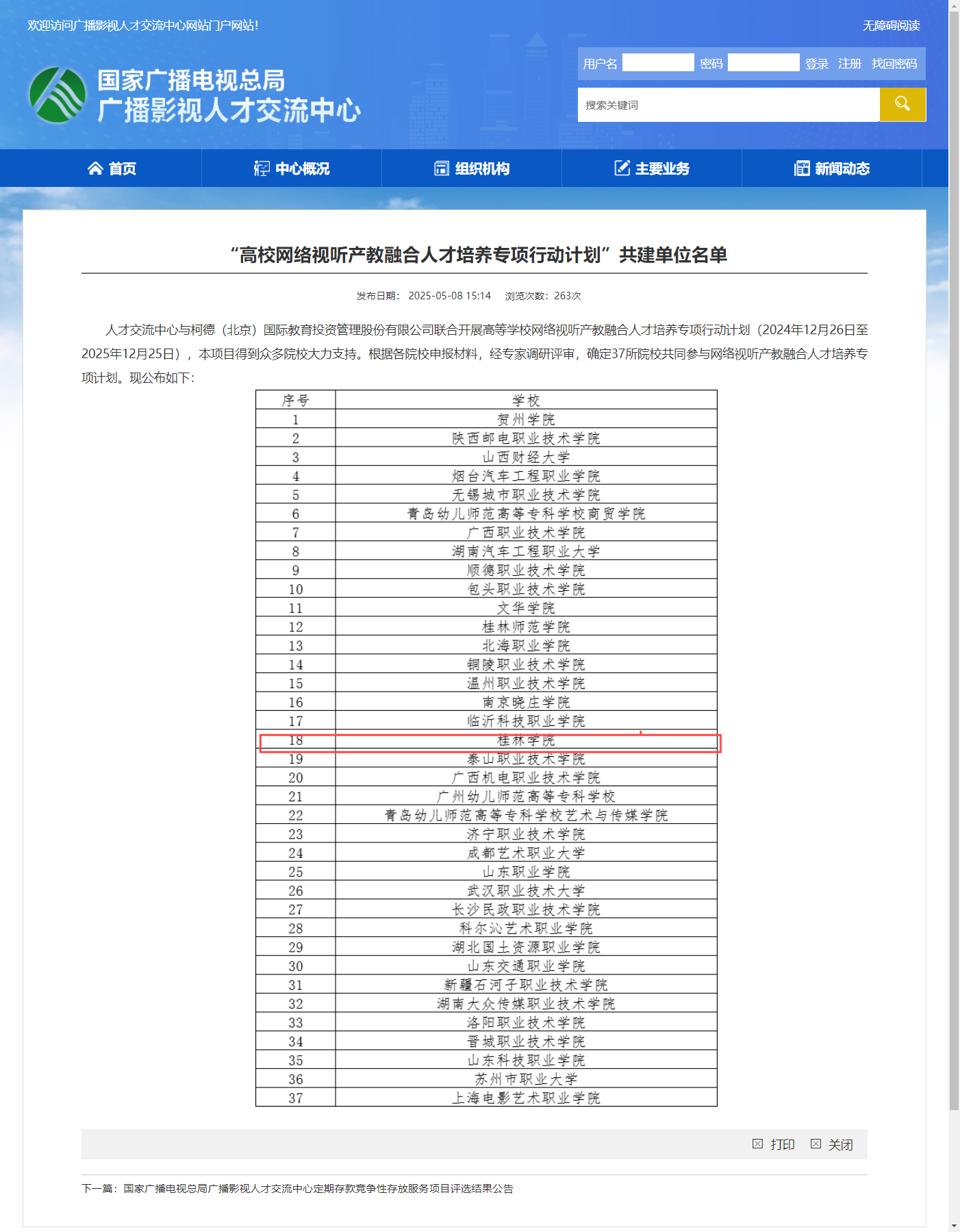 近日,国家广播电视总局影视人才交流中心公布了“高校网络视听产教融合人才培养专项行动计划”共建单位名单,我校成功入选。