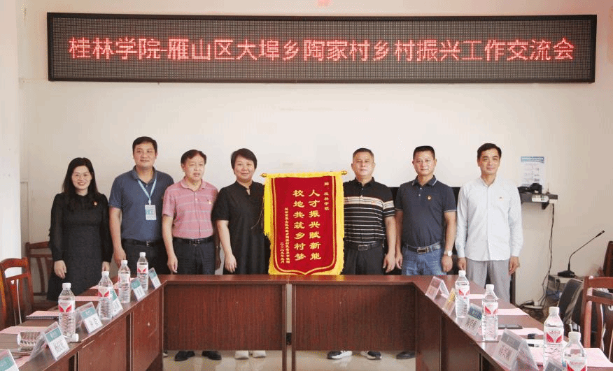 6月4日,副校长杨庆庆一行13人赴雁山区大埠乡陶家村委召开乡村振兴工作交流活动,大埠乡人民政府副乡长蒋兴顺、大埠乡农业服务中心主任胡国栋、雁山区大埠乡陶家村驻村第一书记陈学勇、雁山区大埠乡陶家村村支书龚永根、陶家村党支部、村委会相关负责人,学校漓江文化研究院、科研与社会合作、继续教育学院相关负责人以及工商管理学院、旅游与体育健康学院、城市设计学院教师参加活动。