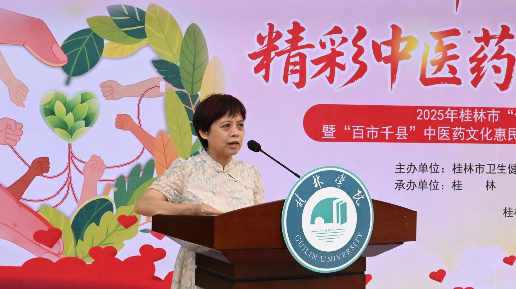 蒋毅在致辞中表示,无偿献血在生命救治中有着无可替代的地位,呼吁更多爱心人士加入献血队伍,携手挽救生命。他指出,本次活动是“公益献血”与“中医药文化”的双向奔赴,更是“健康中国”战略在基层的生动实践,并希望同学们以青春之名,做中医药文化的“翻译官”和“传播者”。他表示,学校将积极承担社会责任,大力推动志愿服务,弘扬中华优秀传统文化,为建设健康桂林贡献力量。