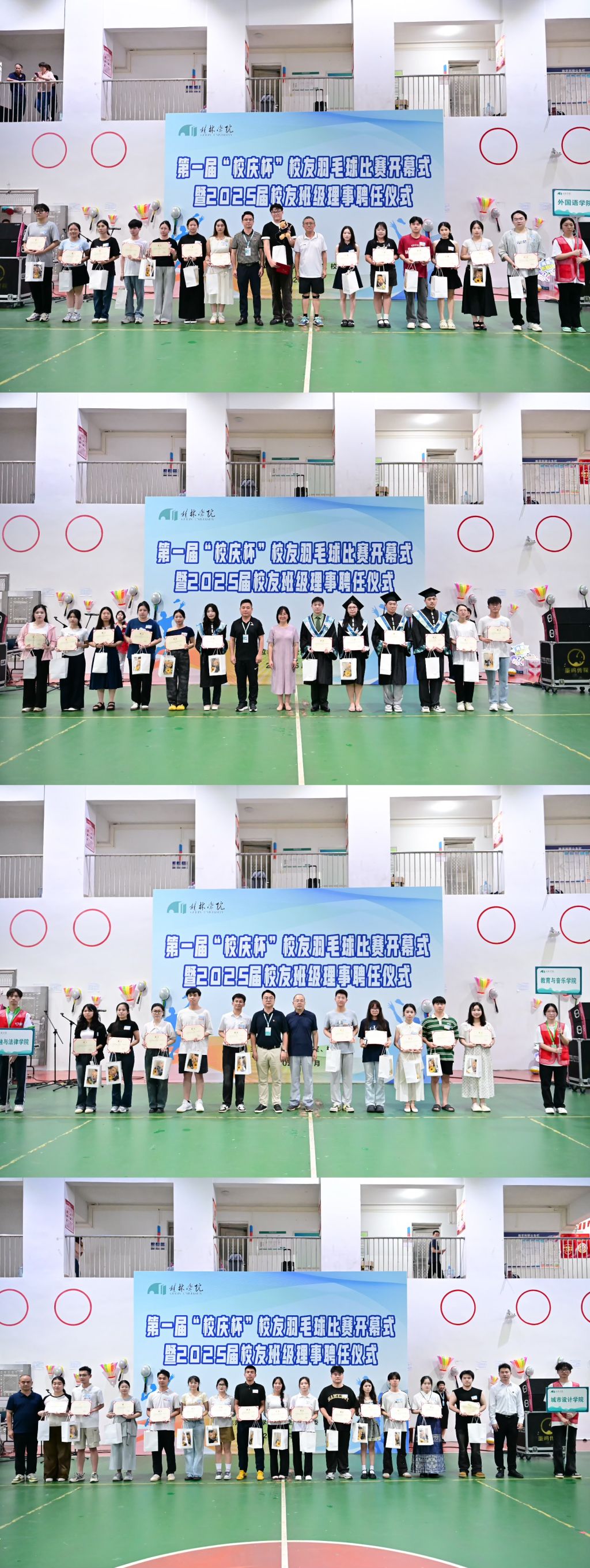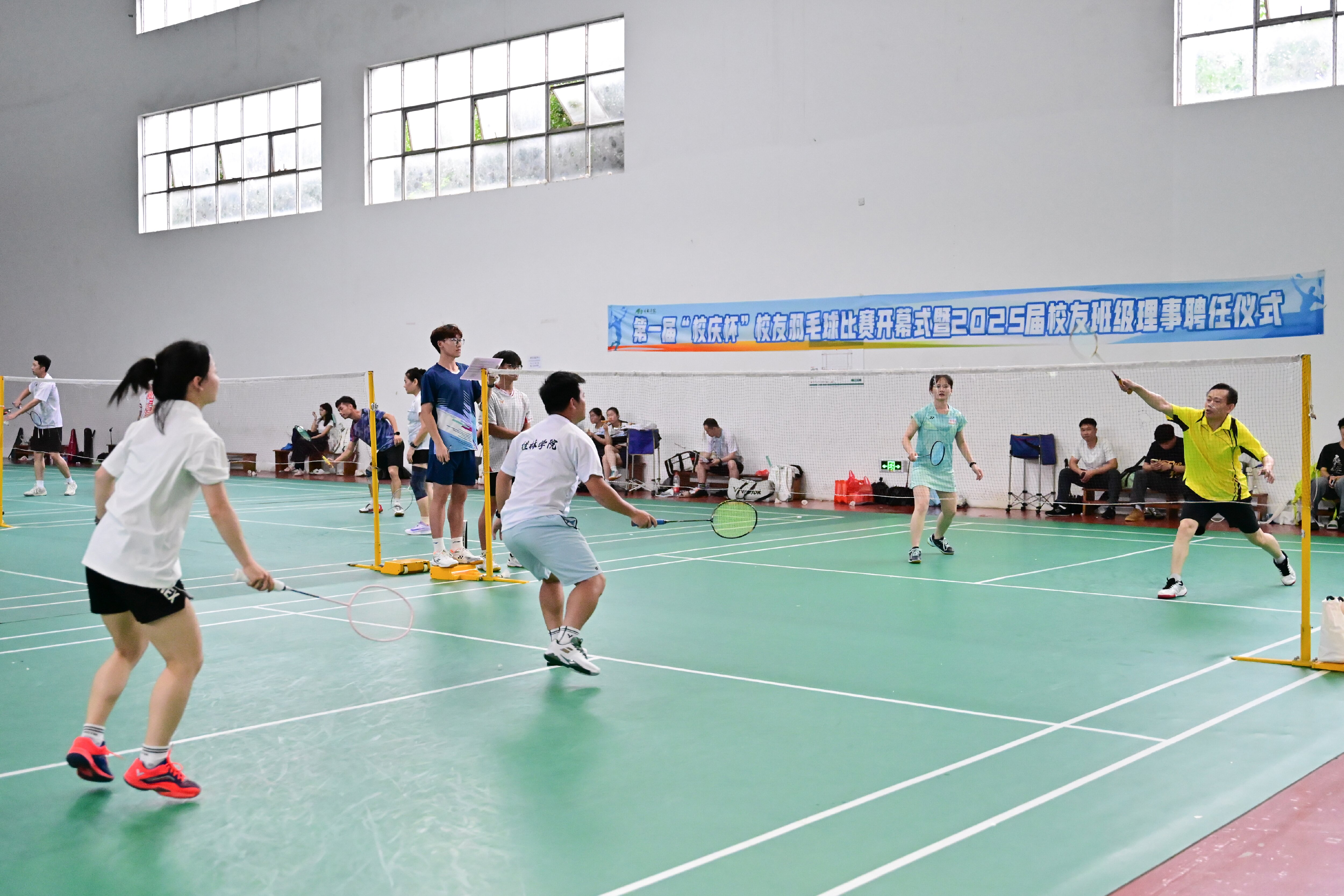 6月18日下午,第一届“校庆杯”校友羽毛球比赛开幕式暨2025届校友班级理事聘任仪式在彰善楼室内球场精彩开幕。副校长蒋毅出席活动,各二级学院党总支书记、校团委书记,以及2025届校友班级理事代表、教职工羽毛球队代表、学生羽毛球队代表、学校桂林校友会羽毛球队代表等齐聚一堂。