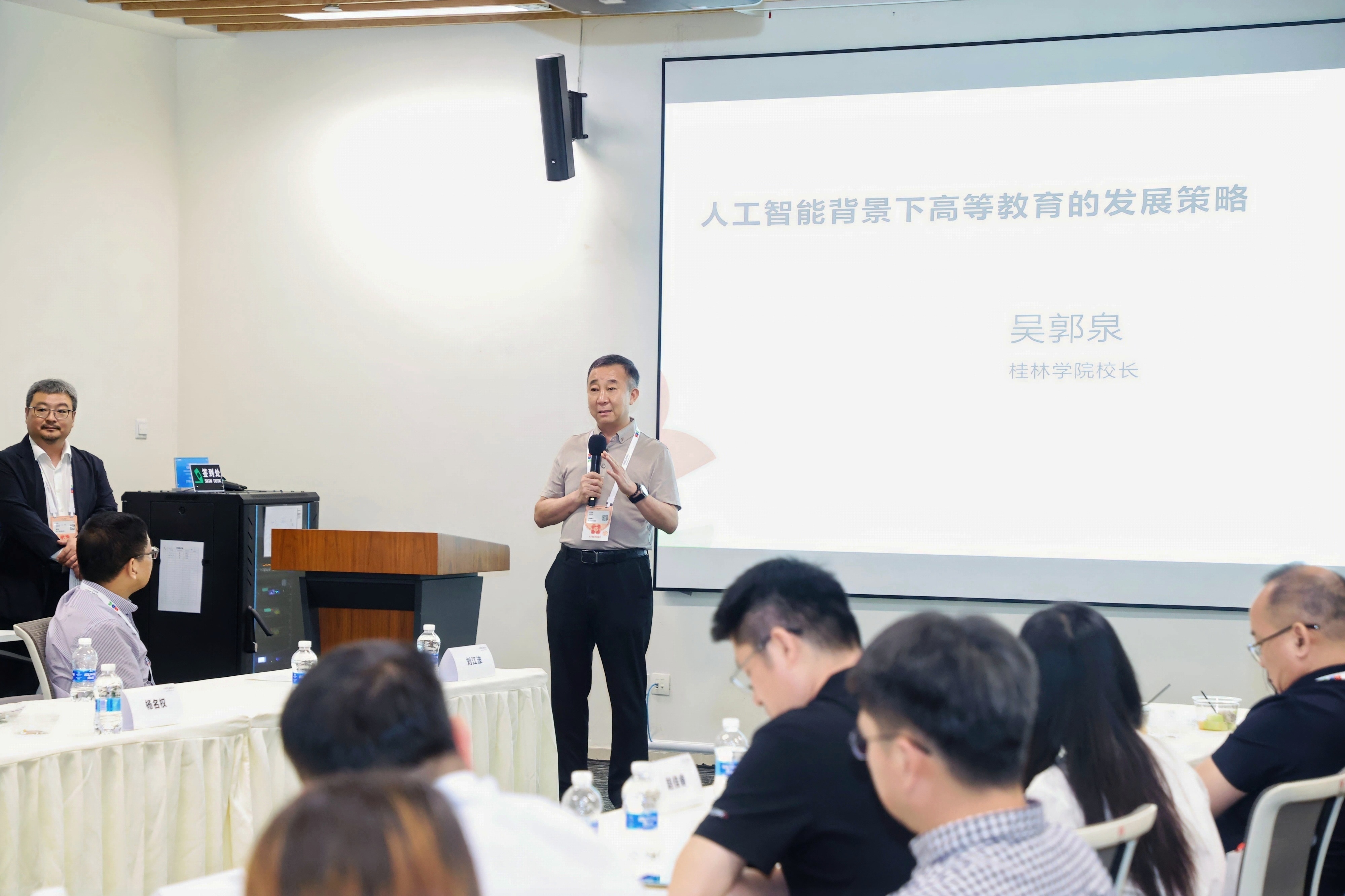 6月20日-22日,校长吴郭泉、副校长杨庆庆率团一行5人赴广东东莞松山湖,参加备受瞩目的华为开发者大会,并密集开展了一系列高端交流与合作洽谈活动,成果丰硕。在大会期间,吴郭泉、杨庆庆受邀出席了4场高峰论坛。在《AI重塑教育 协同定义未来教育》的教育高峰论坛上,吴郭泉做了题为《人工智能背景下高等教育的发展策略》的发言,介绍了学校的基本情况,分享了学校在相关领域的探索与实践,阐述了面向未来的高等教育发展路径,其前瞻性观点引发了与会教育界同仁与行业专家的高度共鸣与热烈讨论。