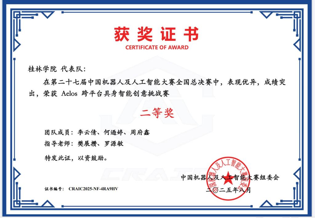近日,第二十七届中国机器人及人工智能大赛人形机器人专项赛圆满落幕,学校首次组织学生参赛即荣获全国二等奖1项、省级二等奖1项、省级三等奖2项。
