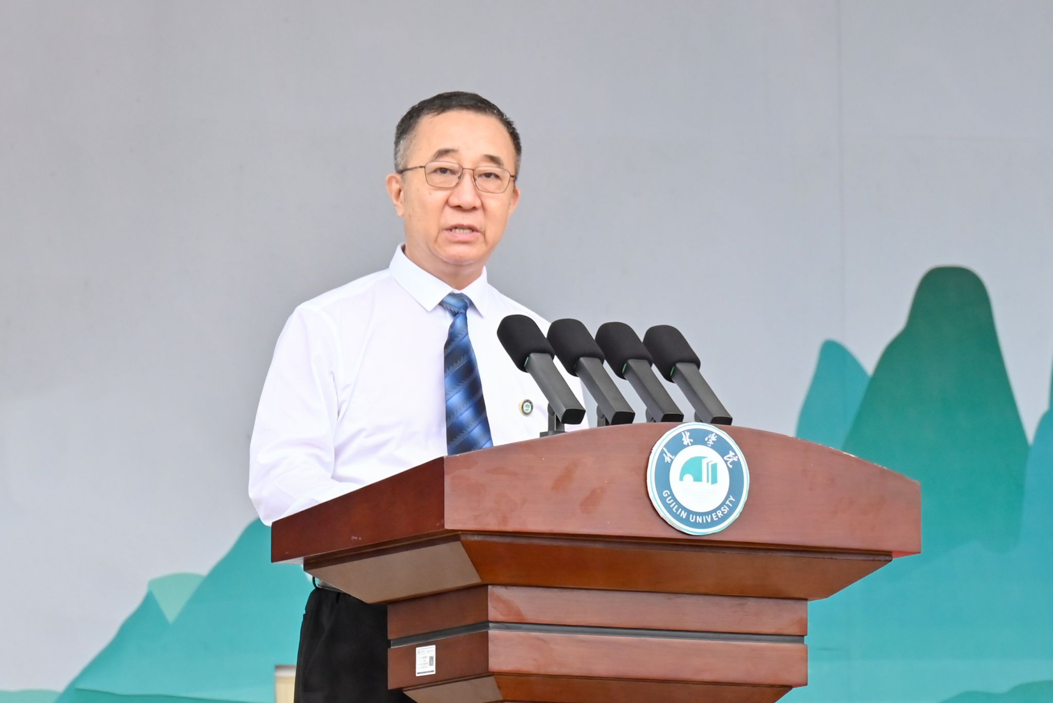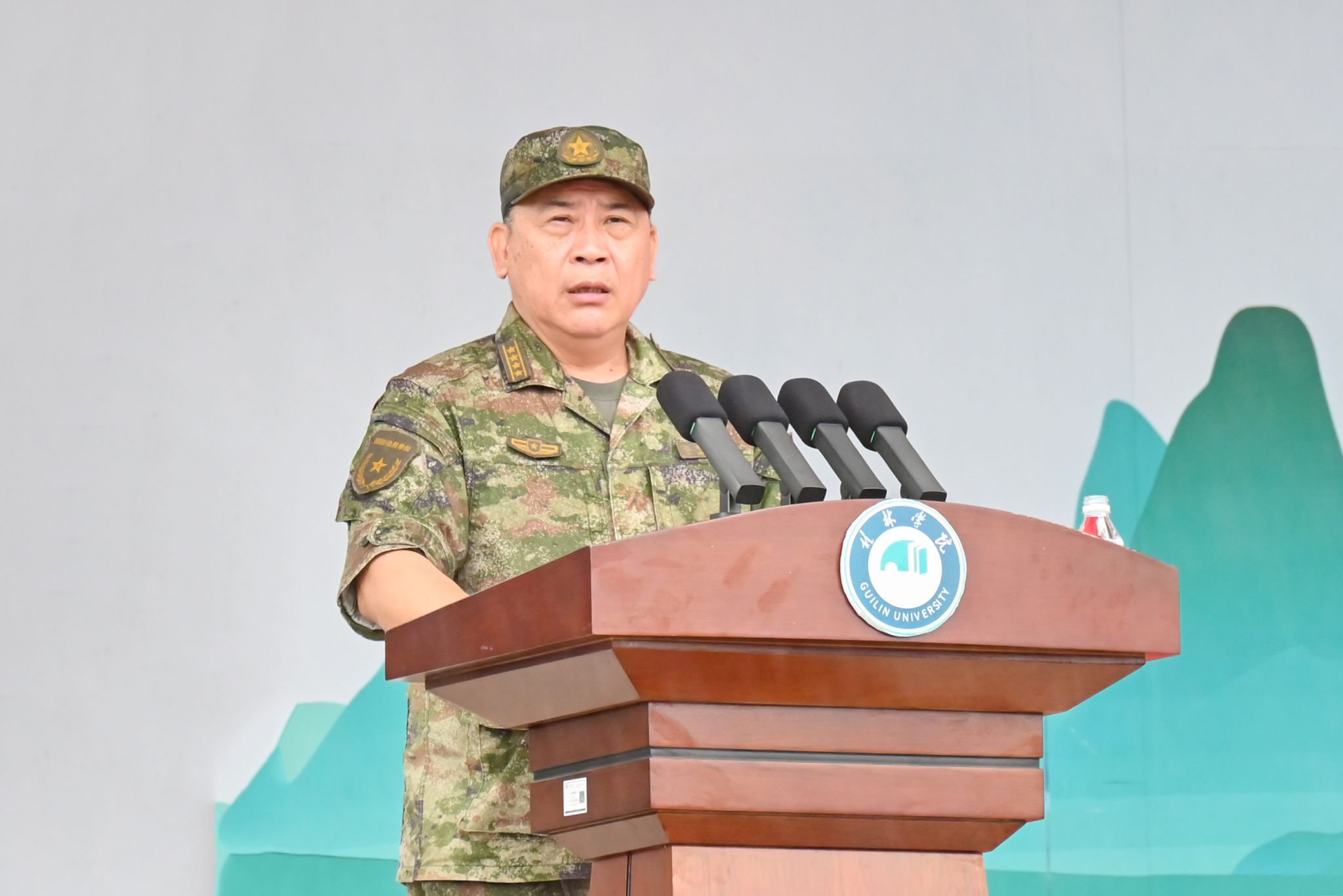 鹰击天风壮,鹏飞海浪春。9月9日上午,桂林学院2025级新生开学典礼在田径场隆重举行。近3000名新生汇聚一堂,赓续桂林学院“向学、向善,自律、自强”的精神血脉,以青春之我、奋斗之我,共同开启属于新“桂院人”的青春篇章。桂林警备区司令员骆明忠大校,陆军特种作战学院六大队大队长陈明元上校,桂林警备区动员处处长刘晖上校,雁山区人武部政委蒋文才上校,校领导吴郭泉、康庚莲、杨庆庆、何玲、蒋毅等出席典礼。典礼由副校长蒋毅主持。