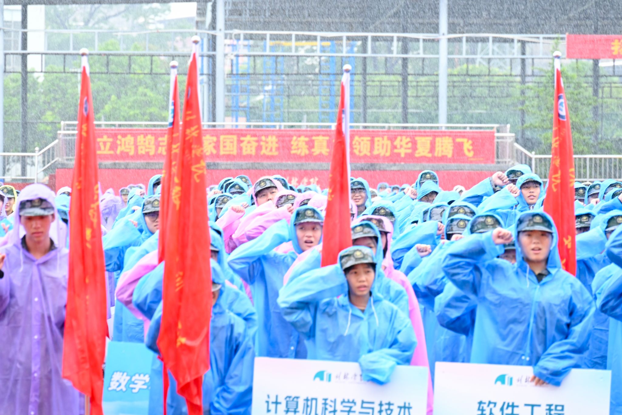 军训动员大会环节,骆明忠大校作军训动员讲话。他希望2025级新生能继承和弘扬伟大抗战精神,赓续红色血脉,以大阅兵的威武雄壮为动力,用“向学”的态度学习军事技能,用“向善”的品格融入集体,用“自律”的要求规范行为,用“自强”的精神克服一切困难,在军训中锤炼品格,在拼搏中收获成长,用优异的表现为大学生活书写青春序章。