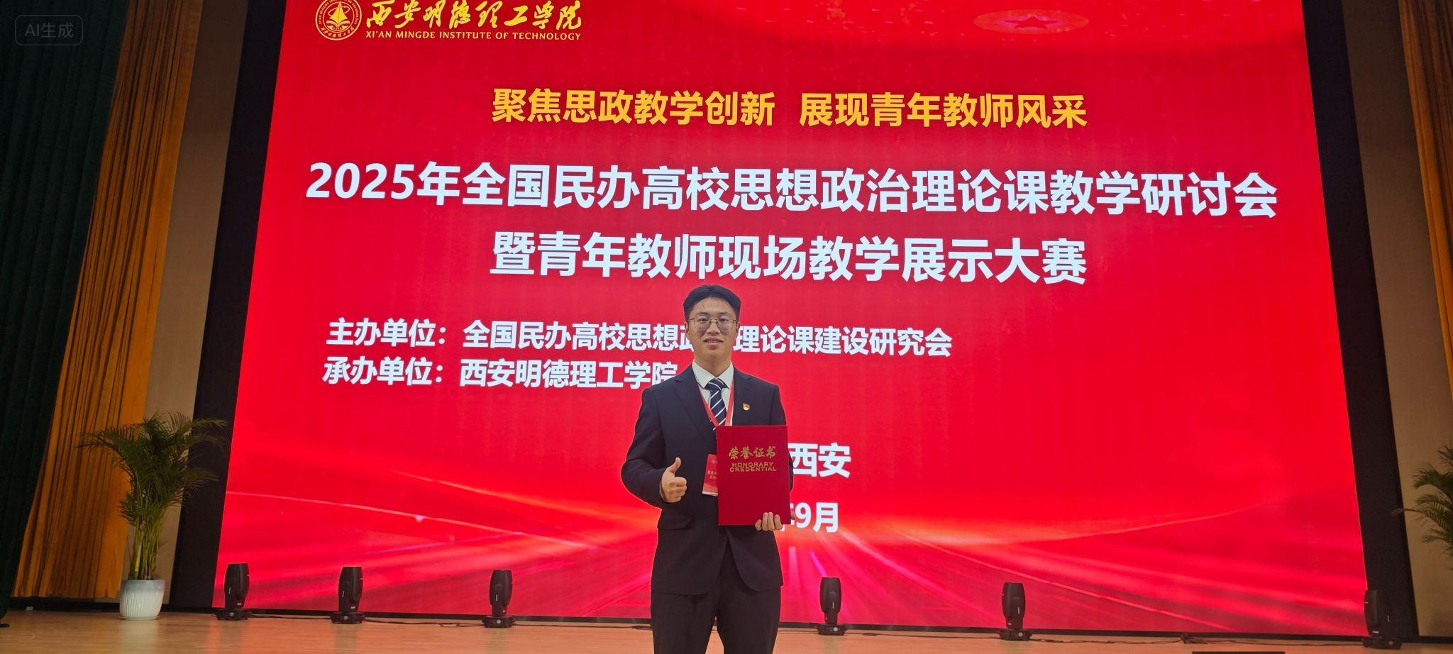 近日,2025年全国民办高校思想政治理论课青年教师教学展示大赛在西安圆满落幕。经过与来自全国47所民办高校思政课青年教师代表们的激烈角逐,我校青年教师唐才茗荣获三等奖,我校马克思主义学院获优秀组织奖。