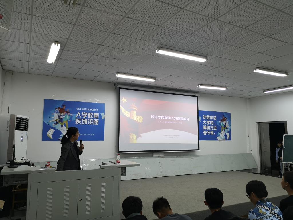 10月23日晚,设计学院在嘉善楼132教室举行入党启蒙教育及民族宗教政策宣传专题讲座。本次讲座由设计学院党总支书记张丽担任主讲人, 2020级全体新生参加了本次讲座。