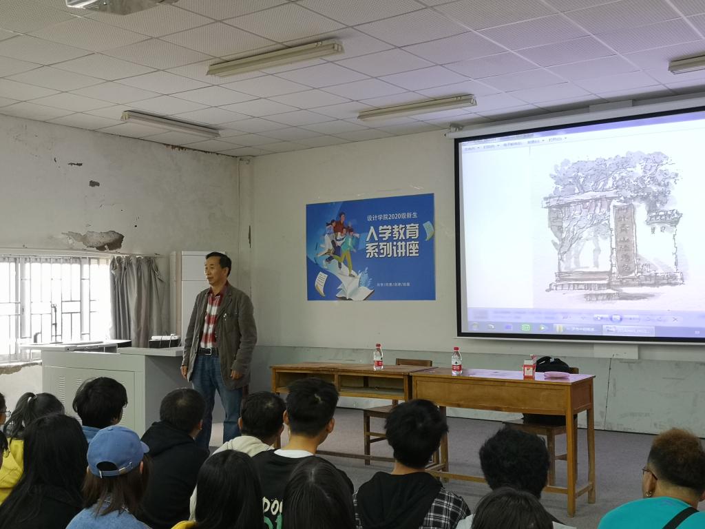 10月30日上午,设计学院在嘉善楼132教室举行新生入学教育系列讲座之《大学学业生涯规划》讲座。讲座由广西师范大学美术学院副教授、副主任罗克中老师主讲,设计学院全体2020级新生参与本次讲座。