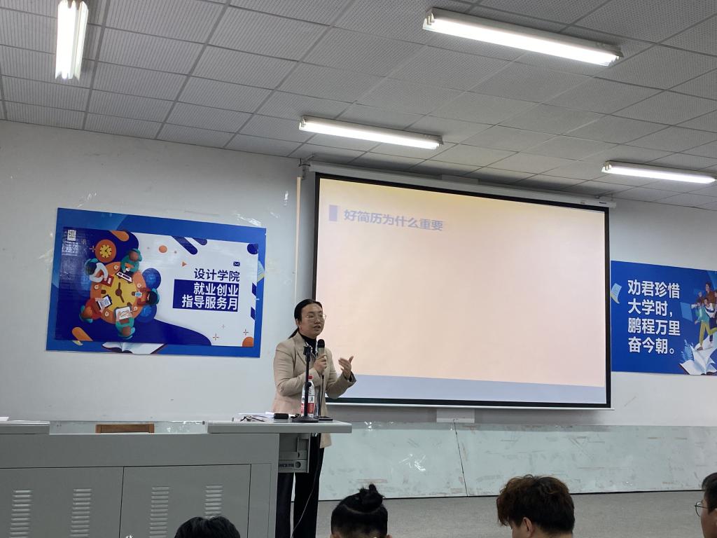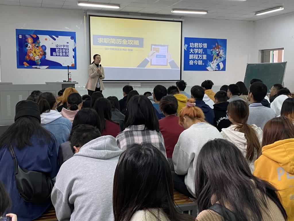 11月4日上午,设计学院就业创业指导活动月系列活动之《简历制作全攻略》专题讲座在嘉善楼132教室举行。本次讲座由设计学院党总支书记张丽主讲,设计学院2017级全体同学聆听了讲座。