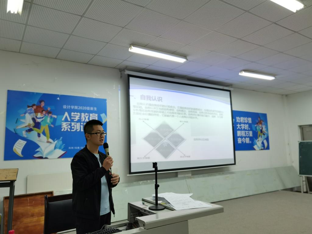 11月13日晚,设计学院在嘉善楼132教室举行新生职业生涯规划讲座,由设计学院2019级辅导员邱胜昇老师担任本次讲座的主讲人,2020级全体新生参与本次讲座。