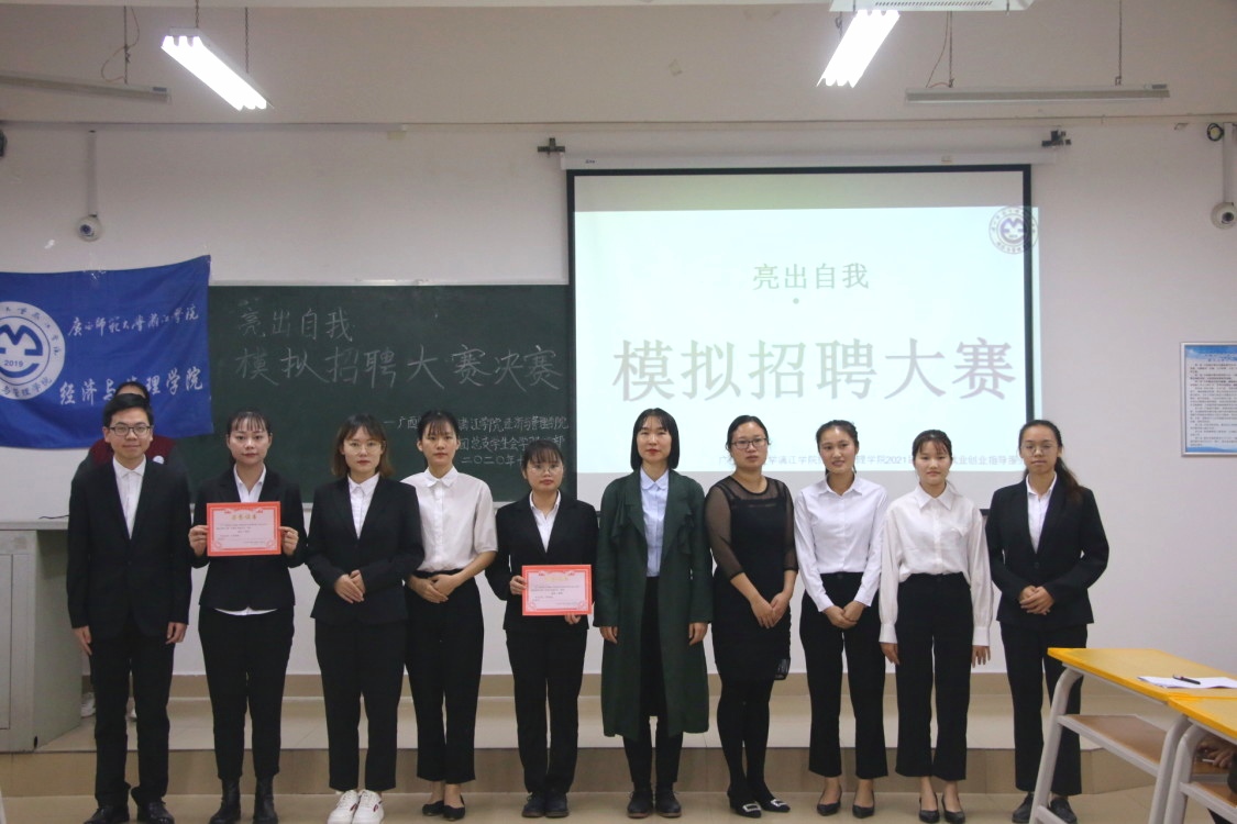为了提高毕业生就业意识,提供一个学习职场知识、锻炼职场能力的舞台,11月17日,经济与管理学院在1506教室举行“亮出自我——模拟招聘大赛”决赛。学院党总支副书记韩磊,辅导员王海玲、许莹、贺春先、郝环一参加此次活动并担任评委。