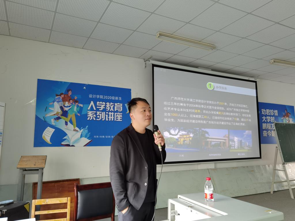 11月20日上午,设计学院在嘉善楼132教室举行新生入学教育系列讲座之《人才培养方案解读》,讲座由设计学院副院长贺雷主讲。
