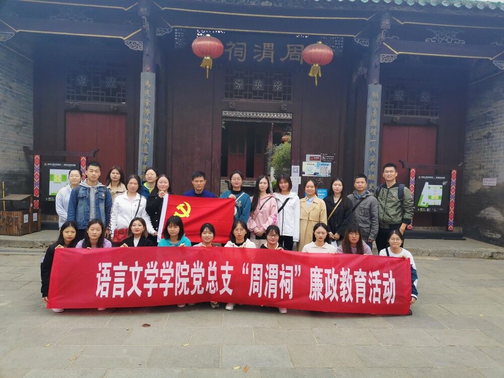 为进一步坚定党员理想信念,增强师生党员的廉洁自律意识、筑牢拒腐防变的思想道德防线,落实党风廉政教育常态化,11月22日,语言文学学院党总支组织师生党员赴恭城瑶族自治县周渭祠廉政教育基地开展廉政教育主题党日活动。